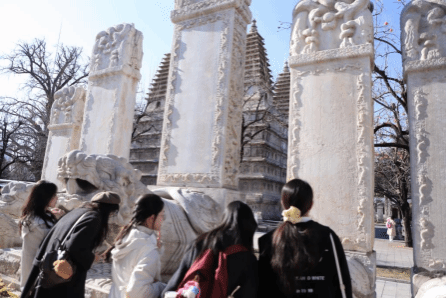 北京石刻艺术博物馆,又称五塔寺,始建于明朝永乐年间。石刻艺术展现中华优秀传统文化的多元风貌,更印证各民族交往交流交融的历史进程。同学们漫步于碑林石刻之间,细细端详历代石碑,聆听讲解员娓娓道来碑刻背后的历史典故与文化内涵,体悟不同时期石刻艺术的独特韵味。